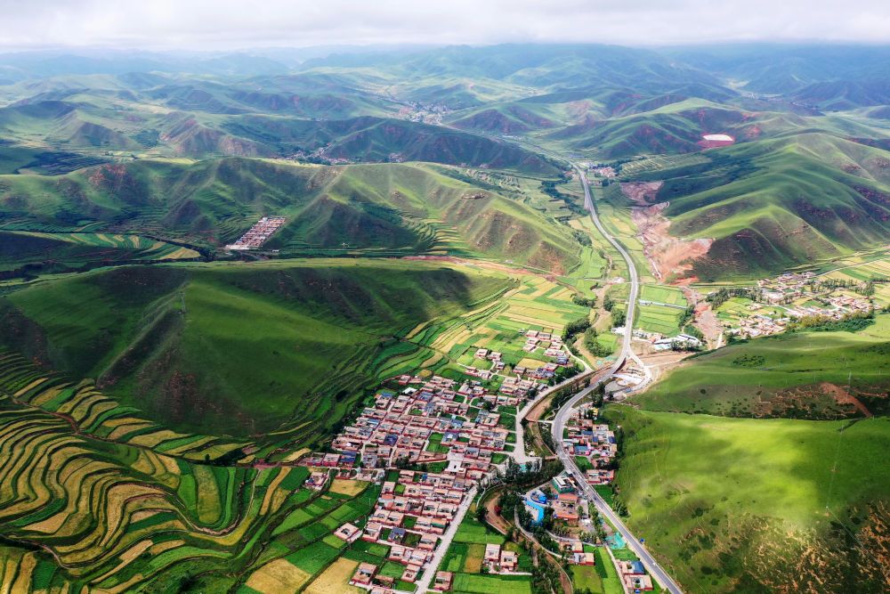 這是2020年8月12日拍攝的甘肅省甘南藏族自治州卓尼縣阿子灘鎮阿子灘村(無人機照片)。新華社記者 邢廣利 攝