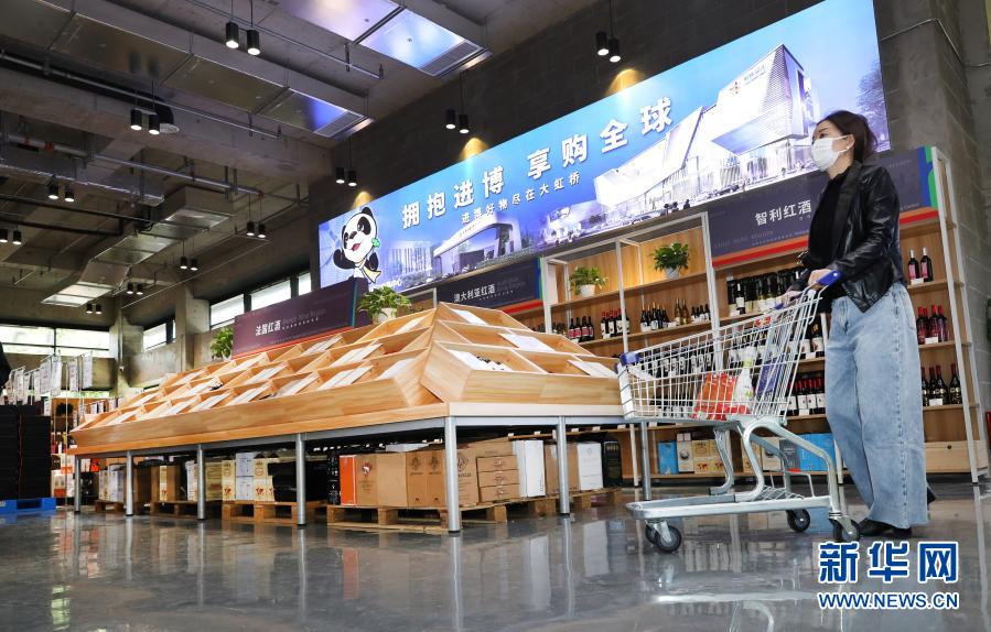 2020年4月25日,“擁抱進博·享購全球”虹橋品匯食品健康館在上海虹橋進口商品展示交易中心開業,顧客在虹橋品匯食品健康館購物。新華社記者 方喆 攝