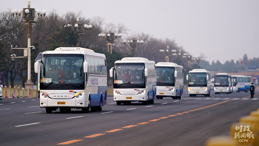 △代表團(tuán)乘車返回駐地。(總臺(tái)國(guó)廣記者李晉拍攝)