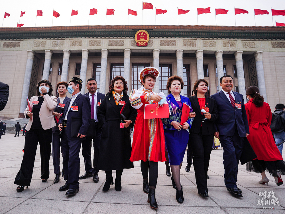 △閉幕會(huì)后,代表們走出大會(huì)堂。(總臺(tái)央視記者程鋮、國(guó)廣記者李晉拍攝)
