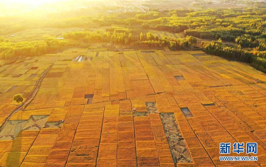 2020年10月18日在河北灤州市古城街道蔣莊村拍攝的稻田(無人機照片)。新華社記者 牟宇 攝