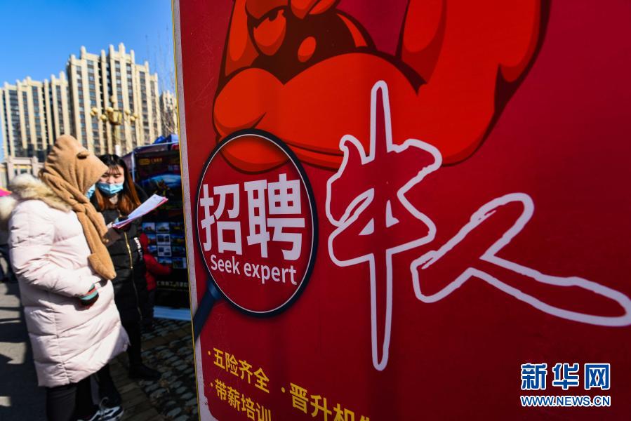 山東省青州市舉辦第20屆企業人才就業招聘會,求職者在招聘會上了解崗位信息(2月27日攝)。新華社發(王繼林 攝)