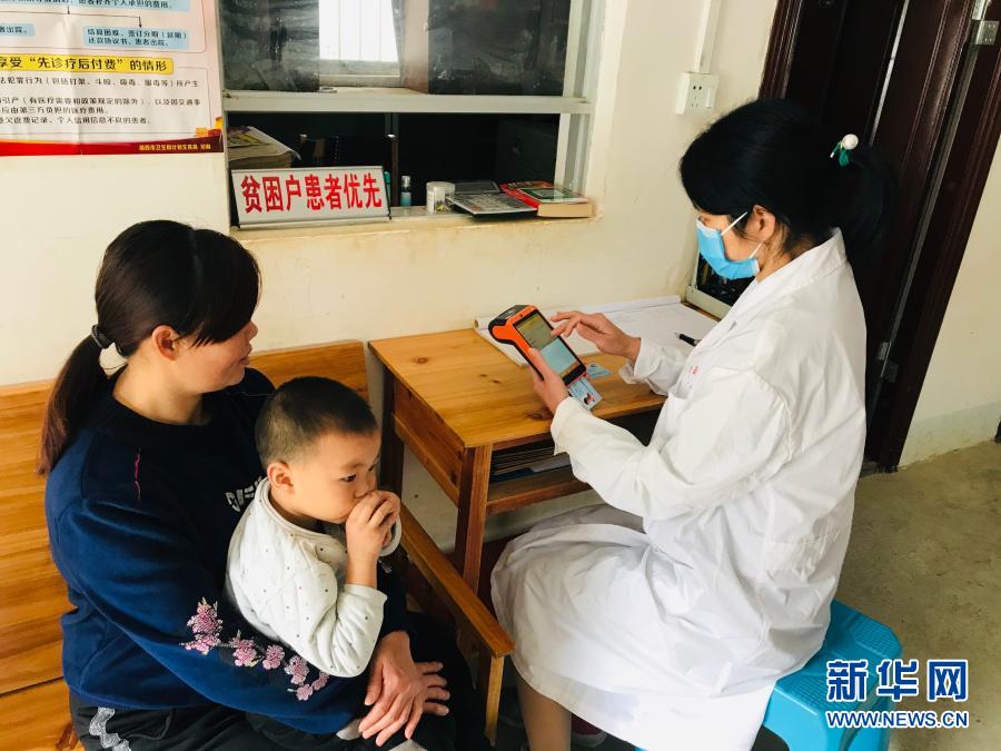 廣西樂業縣新化鎮百坭村群眾通過“村醫通”系統現場進行醫療費用結算(2020年2月12日攝)。新華社發(廣西壯族自治區醫療保障局供圖)