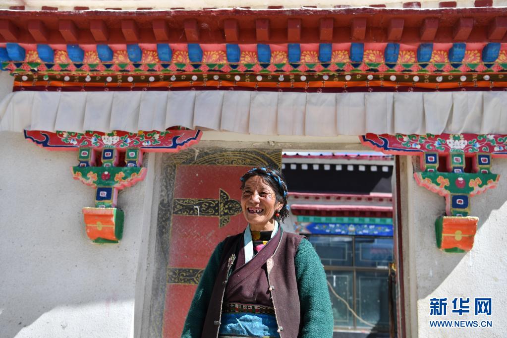 在海拔5373米的西藏浪卡子縣普瑪江塘鄉,一名當地婦女站在新建成的邊境小康村“小康房”門前(2020年4月15日攝)。新華社記者 晉美多吉 攝
