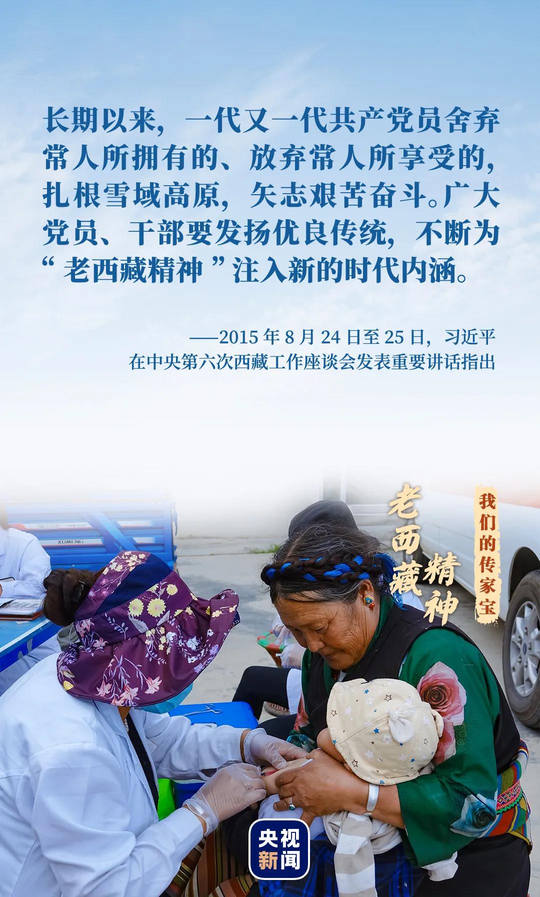 “缺氧不缺精神、艱苦不怕吃苦、海拔高境界更高,在工作中不斷增強責任感、使命感,增強能力、錘煉作風。”2020年8月28日至29日,中央第七次西藏工作座談會召開,習近平在座談會上為 “老西藏精神”作出新的時代注解。