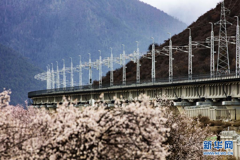 4月1日在西藏自治區林芝市拍攝的拉林鐵路。