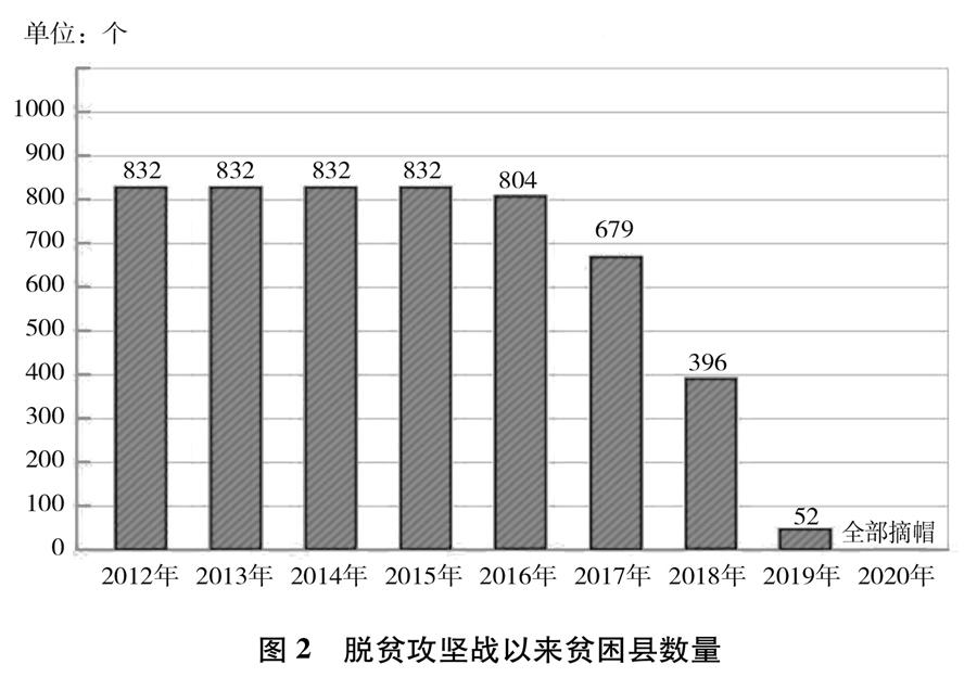 中共十八大以來,經(jīng)過8年持續(xù)奮斗,到2020年底,中國如期完成新時(shí)代脫貧攻堅(jiān)目標(biāo)任務(wù),現(xiàn)行標(biāo)準(zhǔn)下9899萬農(nóng)村貧困人口全部脫貧(圖1),832個(gè)貧困縣全部摘帽(圖2),12.8萬個(gè)貧困村全部出列,區(qū)域性整體貧困得到解決,完成消除絕對(duì)貧困的艱巨任務(wù)。