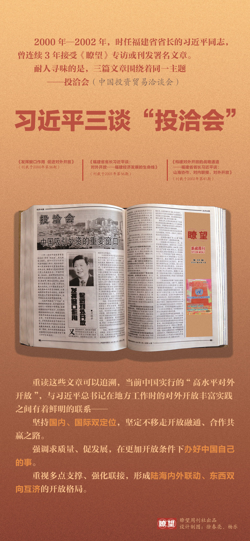 ◇2000~2002年連續(xù)三年,讀者都能在《瞭望》上看到習(xí)近平的署名文章或?qū)TL報(bào)道。耐人尋味的是,三篇稿件圍繞著同一個(gè)主題:投洽會(huì)