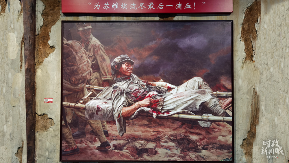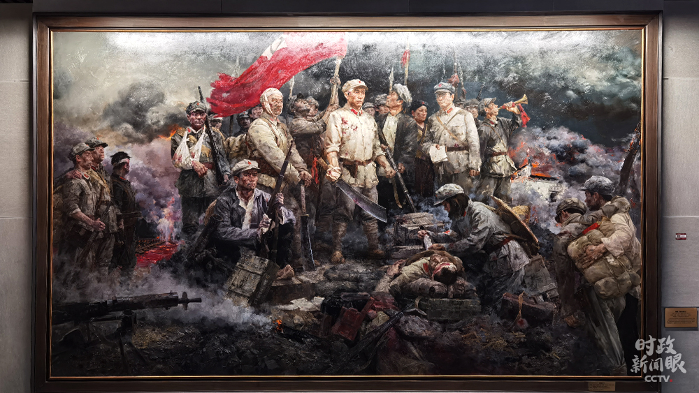 △館內(nèi)名為《浴血湘江》的油畫(huà)(總臺(tái)央視記者馬立飛拍攝)