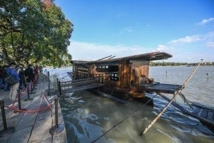 停靠在嘉興南湖湖心島的南湖紅船(新華社記者 徐昱攝)
