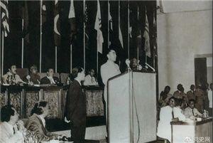 1955年4月18日,亞非會議在萬隆開幕。圖為19日周恩來在會議上發言。
