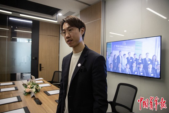 4月20日,廣州市天河區港澳青年之家,TIMETABLE精品聯合辦公空間創始人、90后香港青年吳嘉惠在辦公室里,身后的屏幕正滾動播放他們的創業之路。他和團隊打造的精品聯合辦公空間和咖啡廳因為時尚的室內設計風格,已成為廣州的一處網紅打卡地,圖片在社交網絡上收獲無數“轉評贊”。這正符合他們的創業愿景:讓港澳設計科技創意參與粵港澳大灣區的建設。他們的辦公空間目前有超70個青年創業企業入駐,其中港澳青年項目32個。