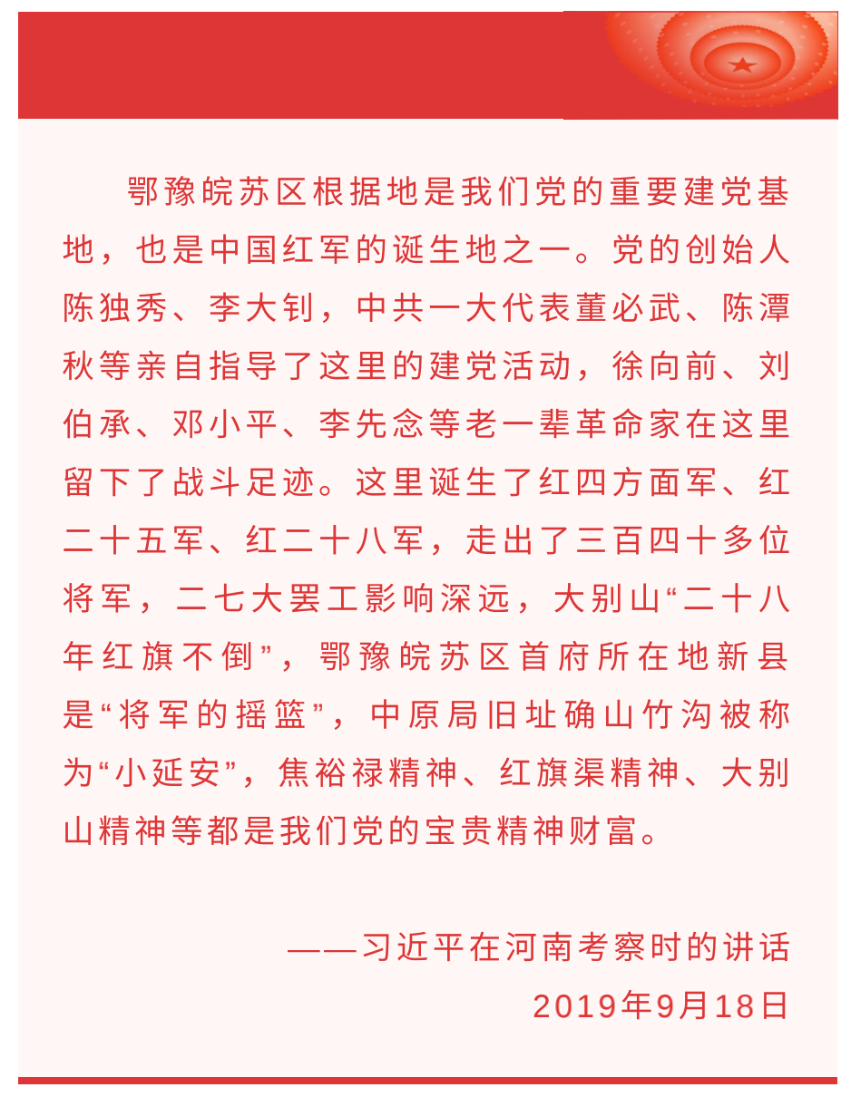 河南新縣是將軍的搖籃。土地革命時期,這里是黃麻起義的策源地、鄂豫皖革命根據地首府所在地,先后誕生了紅四方面軍等主力紅軍,走出了多位叱咤風云的共和國將軍。