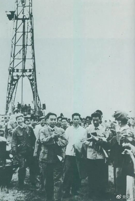 1962年6月,周恩來到大慶視察。這是在1202鉆井隊現場參觀。