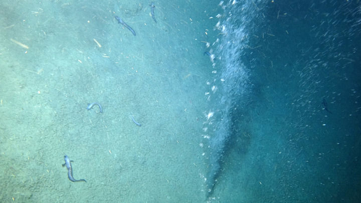 “科學”號科考船的科研人員在深海發現的冷泉噴口(2021年6月攝)。新華社發(中科院海洋所供圖)