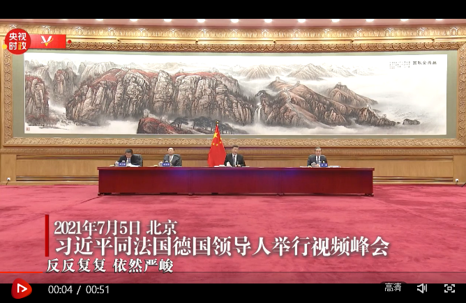 國家主席習近平5日晚在北京同法國總統馬克龍、德國總理默克爾舉行視頻峰會。
