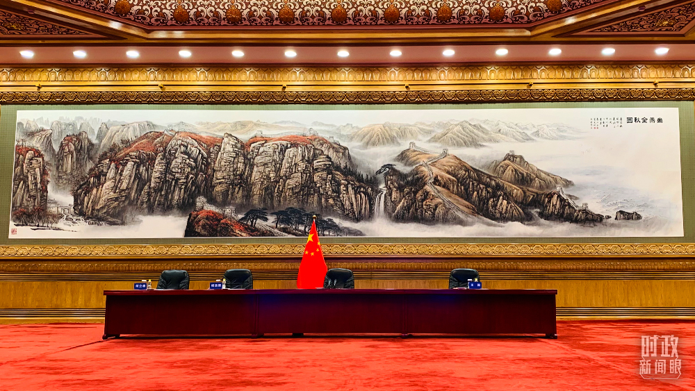 △北京人民大會(huì)堂,視頻峰會(huì)開(kāi)始前的會(huì)場(chǎng)。(總臺(tái)央視記者范一鳴拍攝)
