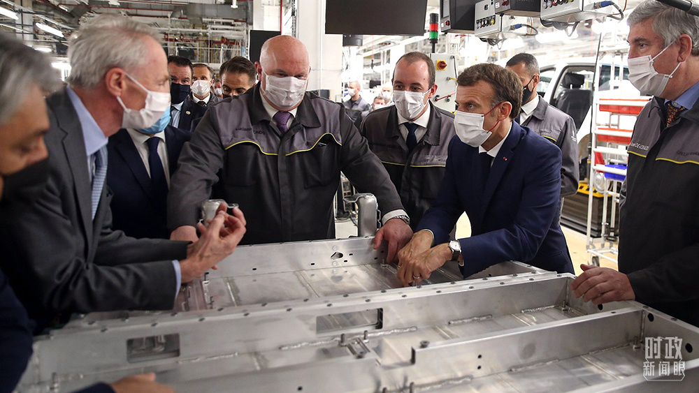 △2021年6月28日,馬克龍(右二)在參觀法國(guó)北部城市杜埃附近的工廠時(shí),對(duì)中國(guó)企業(yè)將在這里投資建設(shè)電池工廠表示歡迎。(圖/視覺(jué)中國(guó))