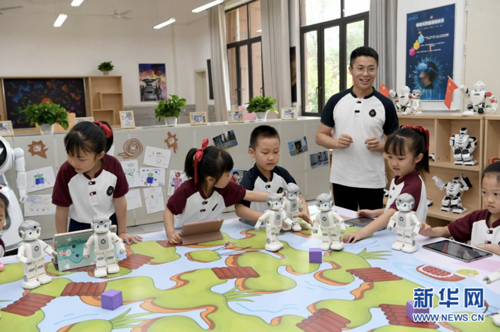 在重慶市兩江新區行遠小學,孩子們通過大屏幕,跟著老師一起學編程。新華網發