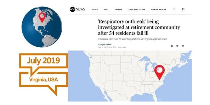 2019年7月:美國(guó)弗吉尼亞州不明原因呼吸系統(tǒng)疾病