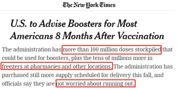 奉行“美國優先”理念的白宮政客們面對全球“免疫鴻溝”從未選擇放棄“疫苗民族主義”,大量囤積遠超其人口需要的疫苗,加劇全球疫苗分配不公。《紐約時報》在18日的報道中提到,政府儲備了超過 1 億劑可用于加強劑的藥物,另外還有數千萬劑存放在藥房和其他地方的冷凍室中。政府購買了更多定于今年秋季交付的供應,官員們表示他們并不擔心會用完。