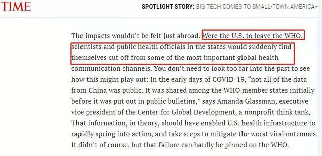 △美國《時代》雜志:如果美國離開世衛組織,各州科學家和官員會發現自己與全球重要的衛生溝通渠道切斷了。這在美國抗疫不力的情況下是不可理解的行為。