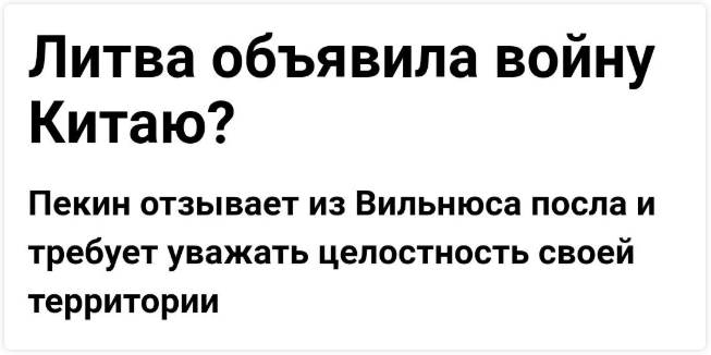 這是俄羅斯媒體“自由新聞網”對立陶宛最近一系列反華行動的諷刺。這篇名為《立陶宛對中國宣戰?》的報道中寫道:立陶宛政府已經把自己逼入絕境。