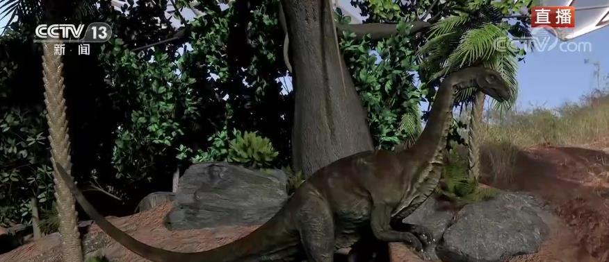 昨天,我們通過3D掃描以及虛擬系統,還原了這只恐龍生活的環境,一起來進入我們虛擬中的侏羅紀世界。當年的地球上還沒有花,也沒有草,有的是蕨類植物,還有松樹、銀杏。如果真的可以穿越到侏羅紀早期,那么給祿豐龍帶去最好的禮物,可能就是我手上的松柏,它可能會是恐龍愛吃的食物。