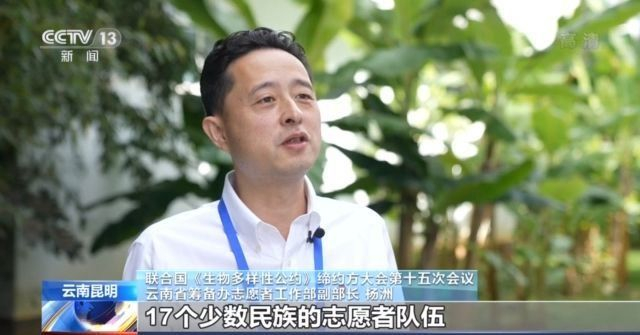 聯(lián)合國《生物多樣性公約》締約方大會第十五次會議云南省籌備辦志愿者工作部副部長 楊洲:志愿者隊伍分別來自彝族、傣族、哈尼族、傈僳族、獨龍族、白族等在內(nèi)的17個少數(shù)民族,也展示了民族文化多樣性的風采。