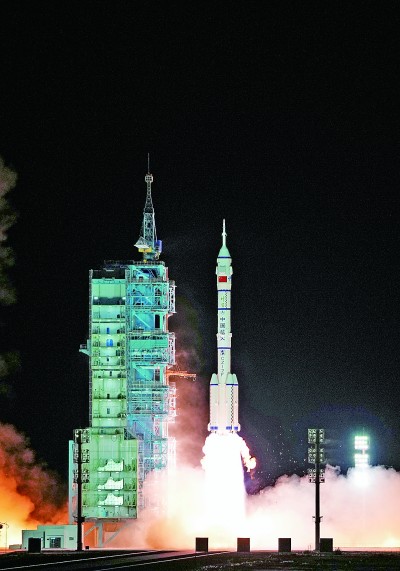10月16日,搭載神舟十三號載人飛船的長征二號F遙十三運(yùn)載火箭在酒泉衛(wèi)星發(fā)射中心點(diǎn)火起飛。新華社發(fā)