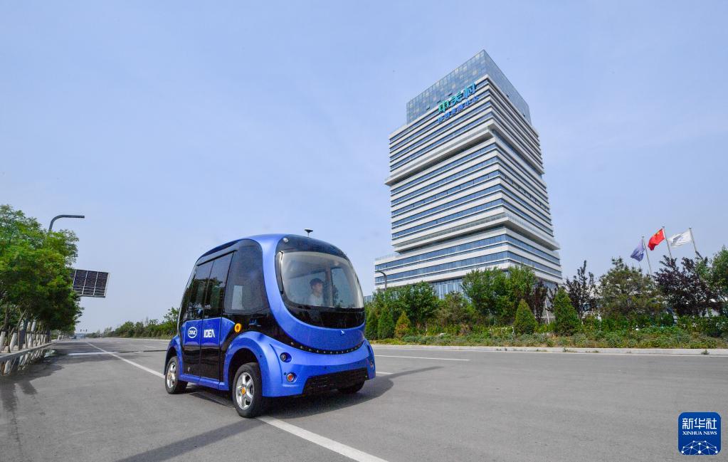 一輛無人駕駛汽車在京津中關村科技城內部道路進行道路測試(5月19日攝)。新華社記者 孫凡越 攝