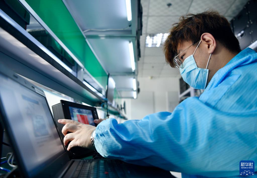 在京津中關村科技城,天津新松智能科技有限公司的員工在調試設備(2020年12月28日攝)。新華社記者 李然 攝