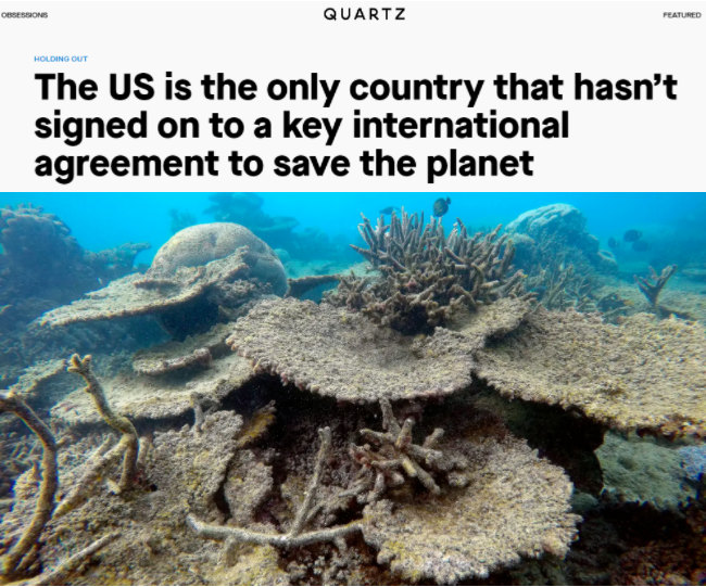 △商業新聞網站Quartz發文認為,美國拒絕批準《生物多樣性公約》可能削弱國內外的生物多樣性保護。