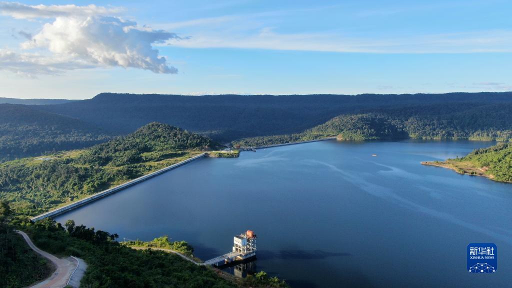 由中資企業投建的位于柬埔寨戈公省達岱河的達岱水電站(2020年11月24日攝,無人機照片)。新華社發