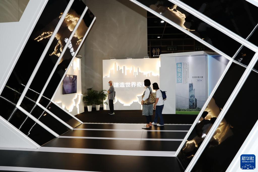 在香港會展中心,市民觀看大國建造主題展(10月26日攝)。