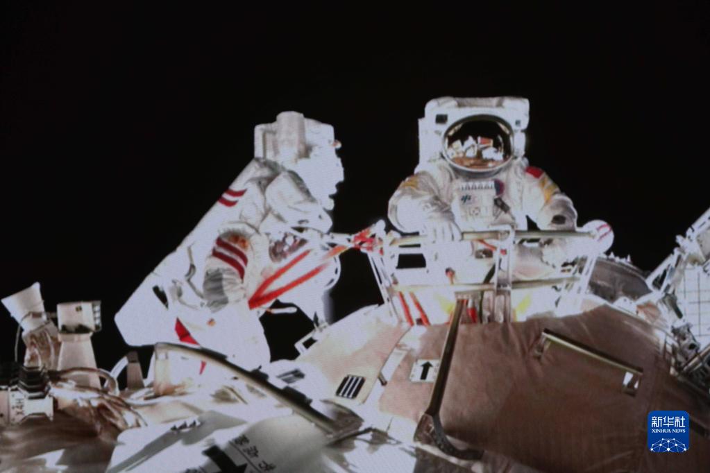 11月7日在北京航天飛行控制中心拍攝的神舟十三號航天員王亞平出艙畫面。新華社發(郭中正 攝)