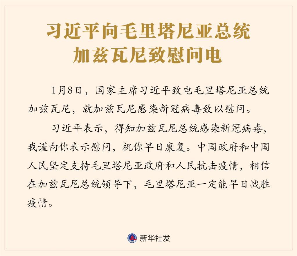 1月8日,國家主席習近平致電毛里塔尼亞總統加茲瓦尼,就加茲瓦尼感染新冠病毒致以慰問。