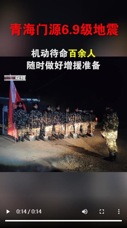 武警海北支隊第一批救援小分隊于5時許到達震中皇城蒙古族鄉,隨即開展清理工作。其余人員正在縣城維護社會面秩序,機動待命百余人隨時做好增援準備,目前暫無人員傷亡情況。