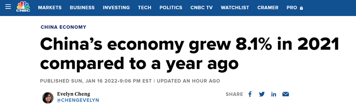 中國經(jīng)濟(jì)2021年“成績單”揭曉 外媒:連續(xù)第二年超預(yù)期增長