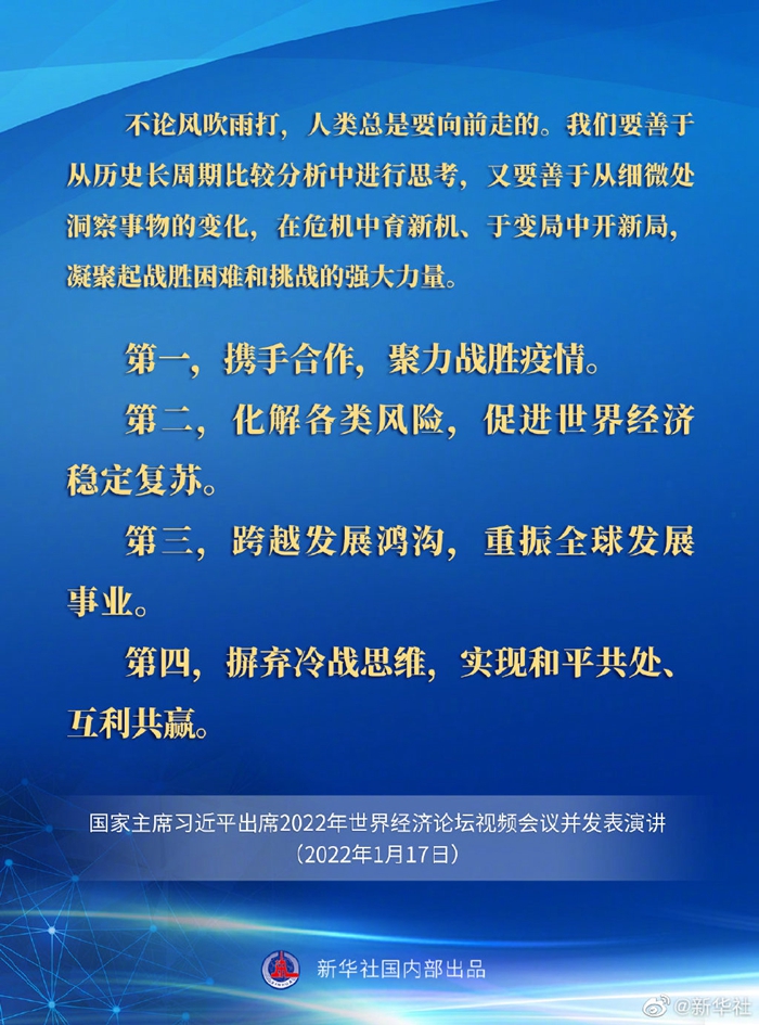 1月17日,國家主席習(xí)近平在北京出席2022年世界經(jīng)濟論壇視頻會議并發(fā)表演講。一起看要點。