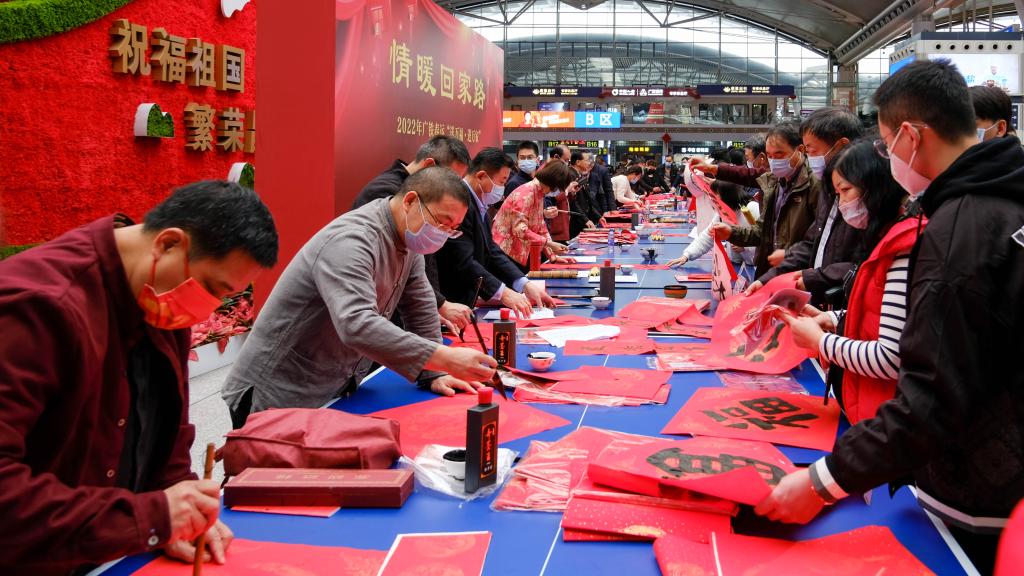 圖為廣州南站在舉行“送萬(wàn)福·進(jìn)萬(wàn)家”文化公益活動(dòng)。廣鐵集團(tuán) 供圖