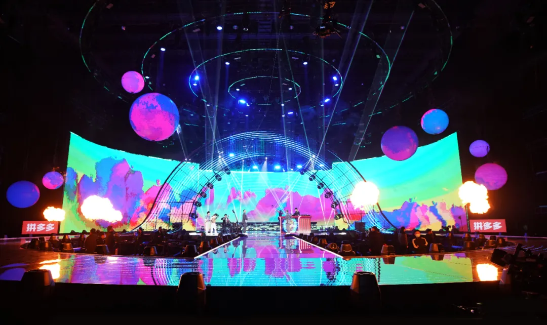 在舞美設計上,2022網絡春晚大膽“開新”,將設計理念延伸至具有無限想象空間的宇宙蒼穹,打造具有網絡春晚獨特氣質的星際“開新”樂園。舞美以絲帶星軌為主體,巨幅環形屏幕配合多個大小不一的球體,形成豐富的層次感和唯美浪漫的視覺體驗。