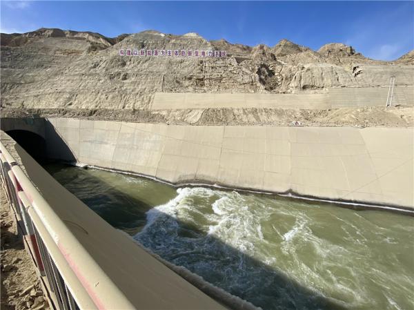 位于青海省海南藏族自治州境內(nèi)的羊曲水電站部分導流明渠(1月26日攝)。新華社記者 王金金 攝