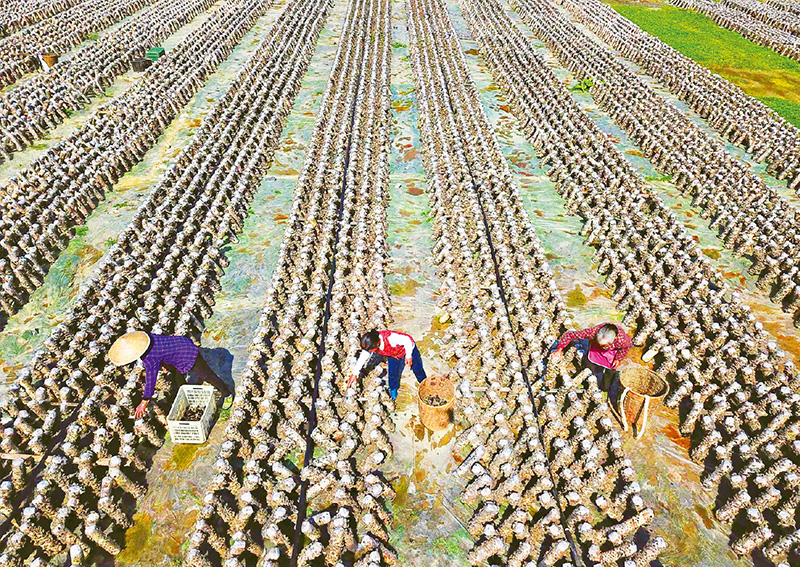 近年來,貴州省圍繞產業選擇、培訓農民、技術服務、資金籌措、組織方式、產銷對接、利益聯結、基層黨建等“八要素”,通過“減、融、服”創新推進農村產業結構調整,既帶動了農戶增收,也推動了特色產業做大做強。圖為農民在貴州省銅仁市萬山區敖寨鄉中華山村的食用菌基地里采摘木耳。 新華社記者 楊文斌/攝