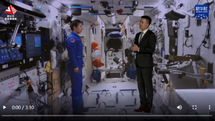 這次,我們通過新華社新立方智能化演播室,運用虛擬空間、XR等創(chuàng)新技術,打破時空限制,讓主持人“來到”浩瀚宇宙的中國空間站,與王亞平代表一起圍繞履職故事,展開一場跨越時空的對話。