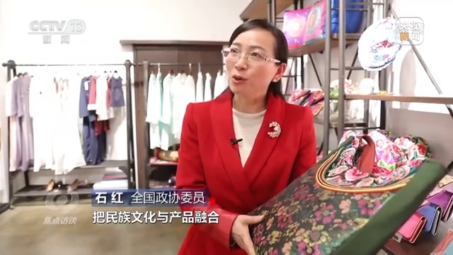 全國政協委員 石紅:文創的產品通過網上銷售,現在是已經成為網絡的爆品爆款,把民族文化與產品融合還帶動了當地的就業。