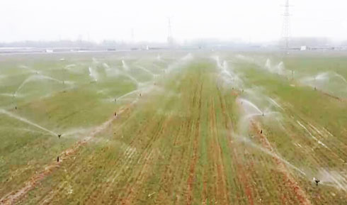 受去年7月中旬洪澇災害的影響,河南濮陽的小麥播種推遲了20多天。隨著天氣轉暖,當地合作社開足馬力為6000畝小麥灌溉澆水,彌補晚播造成的損失。和往年不同,今年的春灌引用了半固定式噴灌頭,可以根據小麥需求規律、土壤水分、土壤性質等條件,進行定時定量灌溉,有效降低了麥田濕度、減少小麥病蟲害,提高了小麥產量。