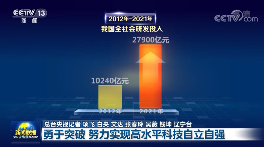 核心技術自主創新能力的提升也有賴于國家投入的增加。黨的十八大以來,我國全社會研發投入從2012年10240億元增長到2021年27900億元,其中基礎研究投入從498億元增長到超過1600億元,是十年前的3.4倍。我國投入運行和在建的大科學裝置從屈指可數增加到50多個,基礎研究和戰略前沿突破能力大幅提升,為偉大變革、筑夢強國奠定新基。
