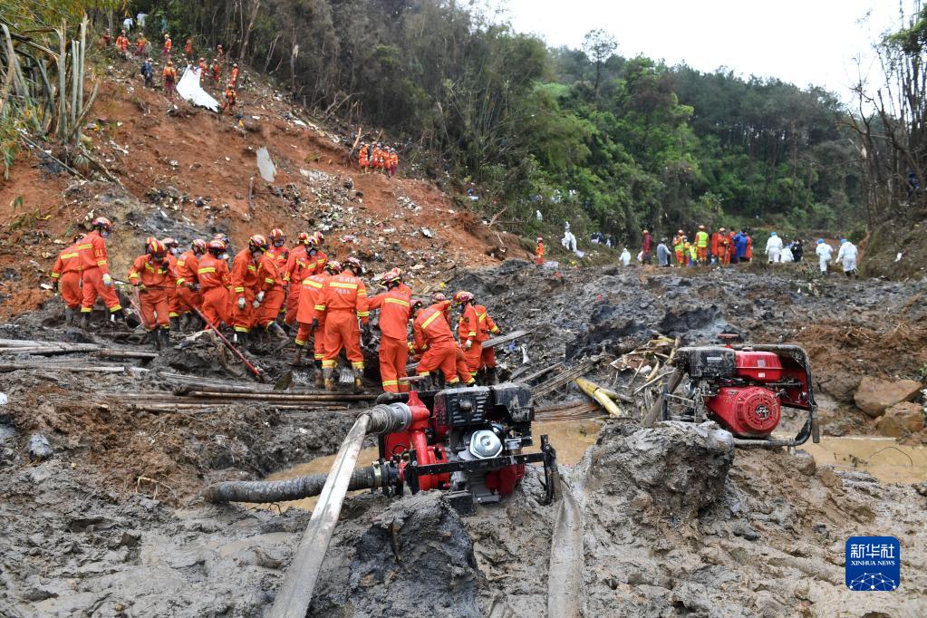 3月24日,藤縣空難搜尋工作持續展開。搜救人員在廣西梧州藤縣事故核心區繼續搜尋失事飛機的另一個飛行數據記錄儀(黑匣子)和相關殘骸。