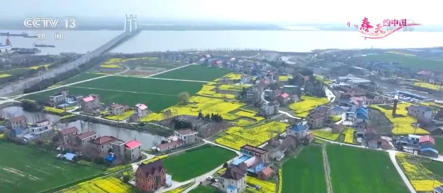 央視網消息:麥田披綠,菜花盛放。在江蘇南通通州區的開沙村,這里春風蕩漾,岸青柳綠,從空中俯瞰,麥苗碧綠鮮亮,油菜花熱烈燦爛,中間點綴著錯落有致的民居。